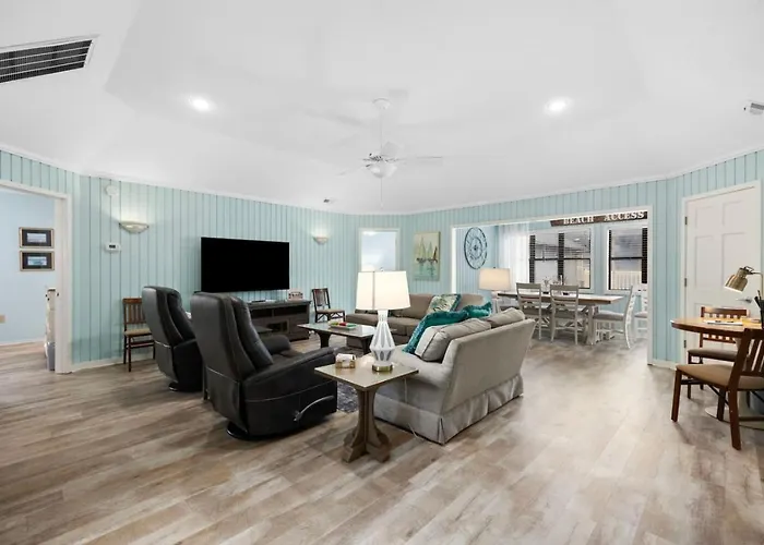 Pet Friendly Tournament And Retreat Spot Next To Beach Golf And Pools Room To Gather In And Out villa has an equipped kitchenette fitted with tea and coffee making equipment, a fridge, and kitchenware. Guests can enjoy American dishes at Ocean Annie's Beach Bar, located 250 metres away.